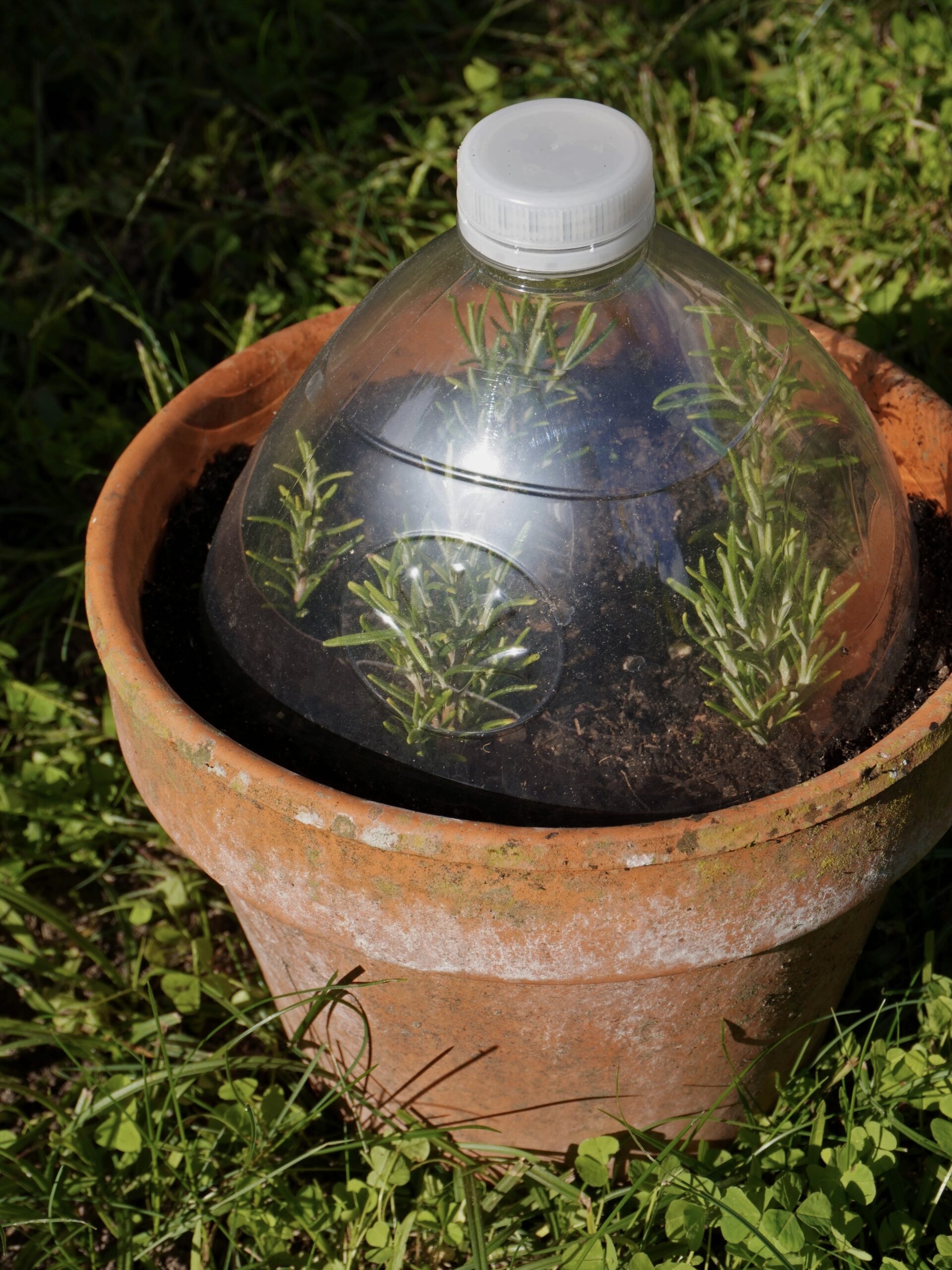 Attention toutefois à ne pas les faire pourrir ! Aérez régulièrement pour éviter que les tiges ne pourrissent, surtout si vous voyez beaucoup de condensation. Enlevez de temps en temps votre poche ou ouvrez le bouchon de la bouteille pour faire respirer vos boutures de romarin.